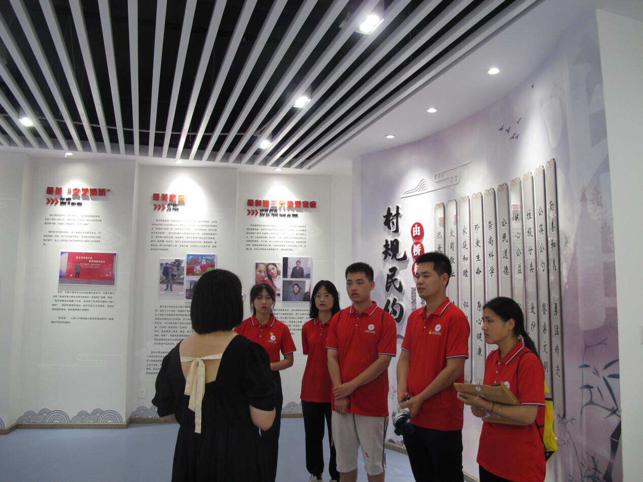 据悉,由桥村是嘉兴市乡村振兴战略实施规划当中的百个示范村之一,是“三农政策”和乡村振兴战略的示范性建设。团队成员到达由桥村村民委员会后,由纪委书记汤玲燕带领成员参观文化礼堂。礼堂二楼展示了由桥村的发展历程,该村致力于美丽乡村发展,“去年拿到了浙江省的3A景区”,汤玲燕同志向团队成员介绍到。展厅还列出了由桥村的民俗风情、村规民约、志愿服务项目以及当地的特色景点等。这些都是由桥村根据《嘉兴市乡村振兴战略实施规划(2019—2022年)》当中六大行动展开的活动。