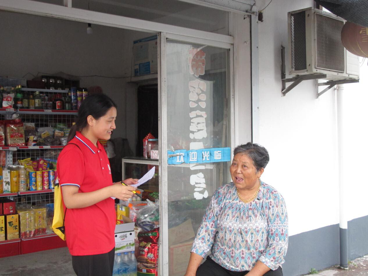 图为“学百年党史”社会实践团成员李佳彦向由桥村村民询问由桥村的情况。 中国青年网通讯员 张洁 摄