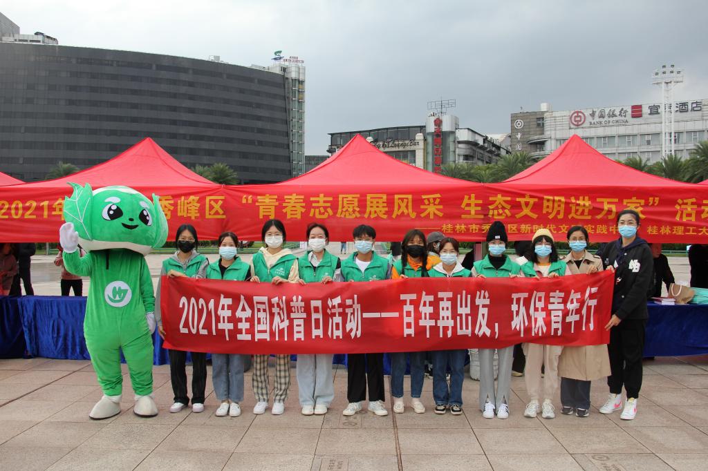 组织学生志愿服务队前往桂林市中心广场参加2021年桂林市秀峰区“青春志愿展风采,生态文明进万家”活动。