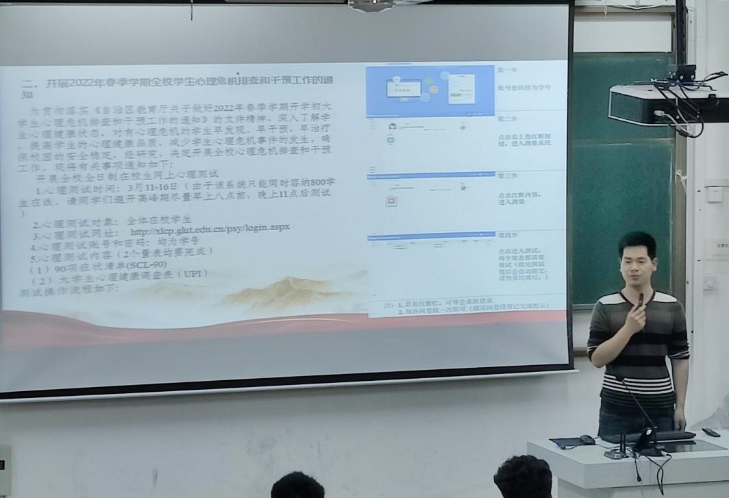 为贯彻落实《自治区教育厅关于做好2022年春季学期开学初大学生心理危机排查和干预工作的通知》(桂教思政〔2022〕2号)的文件精神,积极响应学校心理咨询中心关于开展2022年春季学期开学初学生心理危机排查和干预工作的通知,黑料吃瓜网