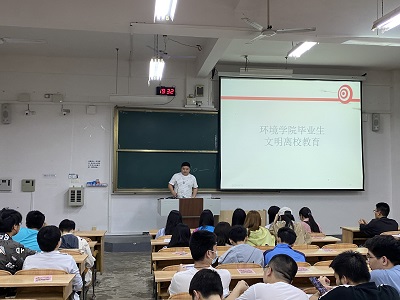 在06408教室举行2022届毕业生文明离校报告会,2022届全体毕业生参加报告会。