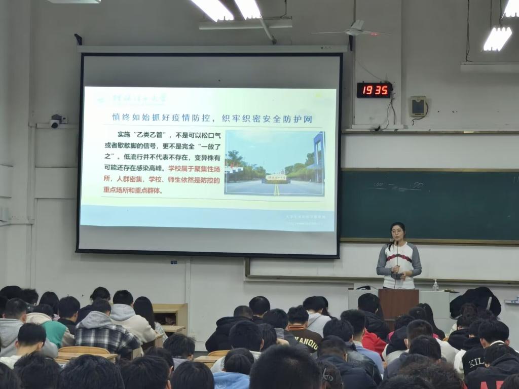 课堂上,各年级辅导员结合年级学生特点,通过PPT展示、视频播放等方式,从校园疫情防控、宿舍安全、学业发展、心理健康、谨防诈骗等多个模块深入展开,引导学生养成积极乐观的心态,更快适应家校环境的转换,制定新学期学习计划,努力丰富自我、发展自我、成就自我。此外,为大力营造学习“两会”,争做积极向上好青年的浓厚氛围,课堂上,辅导员还带领同学们一同学习了两会的基本常识,引导同学们关注国家、关注社会、关注人民,鼓励同学增强政治能力,自觉学习贯彻党的二十大精神,紧跟核心、追求真理、坚定道路,以高度的思想自觉、政治自觉、行动自觉争做一名积极向上的好青年。