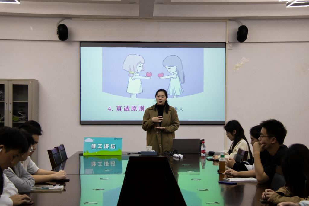 在讲座的伊始,陈千癸老师用数据列举了我校某学院中宿舍人际关系的情况。数据表明,近一半的学生表示宿舍人际关系不够亲密,这就充分展现拥有良好宿舍人际关系对于当代大学生的重要性。在讲座过程中,陈千癸老师分别从人际交往中的原则与效应、宿舍人际的建立、宿舍人际中的矛盾和矛盾中的沟通四个方面展开对宿舍人际关系优化的论述,并提醒同学们在日常生活中要关注彼此的感受,尊重他人,在日常生活中尝试站在对方的角度思考问题,避免因为小矛盾继而引发更大的问题。同时,老师还结合影视作品中的一些故事作为实例,传授了一些实用性强的沟通技巧,如倾诉、表达和换位思考等。