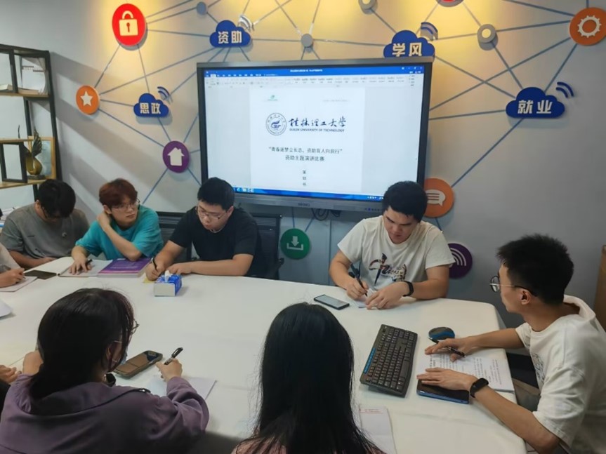 第三届“资助育人文化节”活动实施方案的有关要求及精神,介绍了学生资助工作的相关注意事项,并对学校最新的资助政策进行了详细、系统的解读。随后,围绕“资助政策宣传月”“诚信感恩主题教育”“学院自选性资助育人活动”等方面的工作进行了重点部署。他强调,全体学生资助骨干要聚焦学生资助工作主线,努力开展有新意、有特色、有深度的资助育人活动,提升广大学生对资助政策的认知度和参与度,营造浓厚的资助育人文化氛围,不断深化构建发展型协同资助育人工作格局,推动学院学生资助工作高质量发展。最后,全体与会人员根据学校“资助育人文化节”活动实施方案的具体内容展开热烈的讨论与交流。