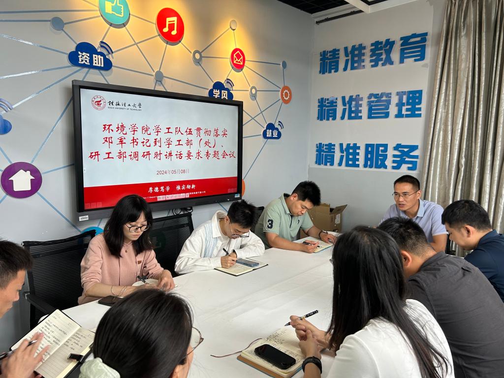 在12408大数据工作室召开贯彻落实邓军书记到学工部(处)、研工部调研时讲话要求专题会议,学院党委副书记叶大相出席会议,全体专兼职辅导员参加会议,会议由叶大相主持。