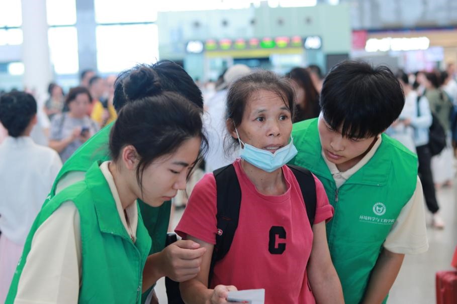 实践团为乘客进行引路