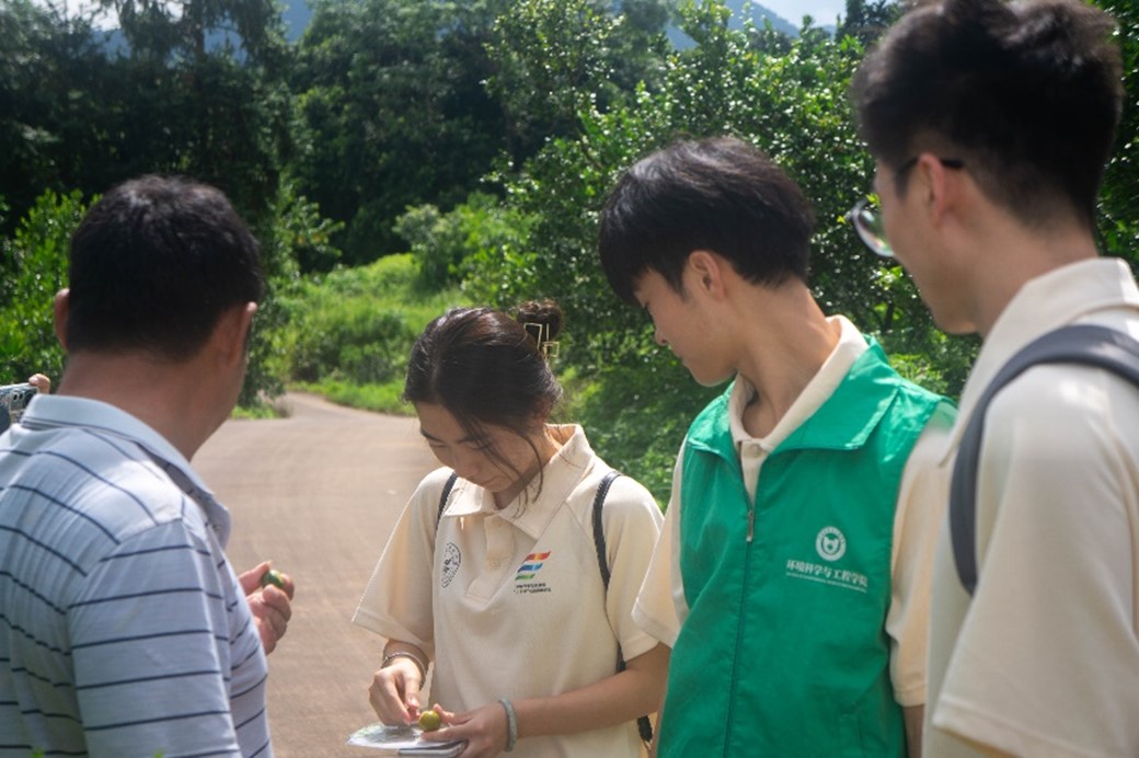 实践团成员品尝柑橘
