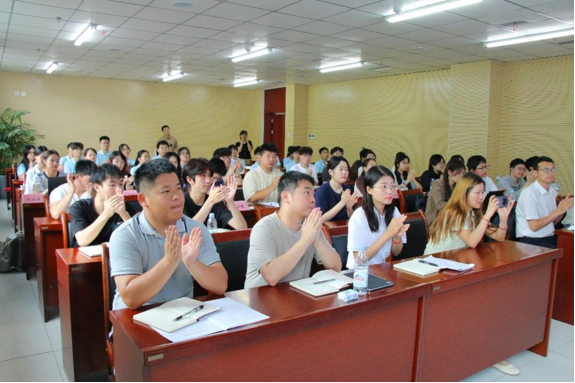 历史是最好的教科书,也是最好的清醒剂……”课堂伊始,陈道明老师引用习近平总书记在参加首都各界纪念全民族抗战爆发七十七周年活动时的讲话,引出党课内容,通过徐向前、许继慎、周国才、张思德等人生动的案例故事和详实的数据,向三校联合实践团成员讲述了红四方面军为什么能红遍大别山、如何鼎盛大别山,以及在长征中的艰难历程,指出在新时代要传承发扬好坚守信念、不胜不休,顾全大局、担当奉献,万众一心、团结奋进,勇当先锋、排难创新的大别山精神,凝聚起全面推进中华民族伟大复兴的磅礴力量。