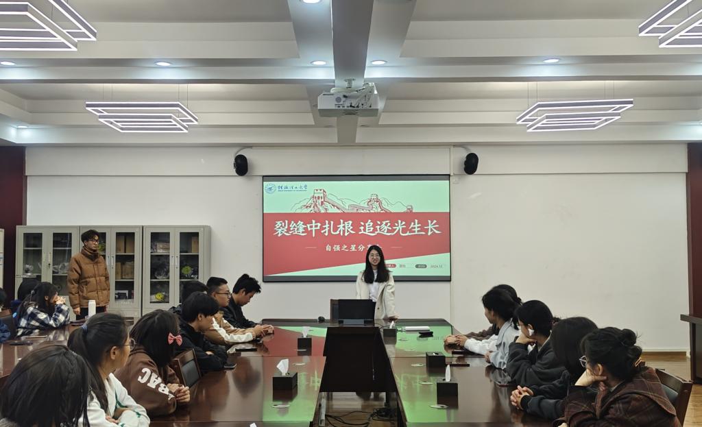 在12407会议室组织开展“自强之星”励志榜样宣讲会。本次宣讲会由2021级水文创新班蓝怡同学主讲,50余名受助学生参加。