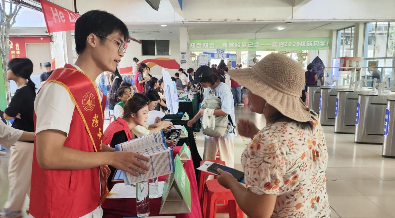 在学院迎新点,专设的“绿色通道”服务区格外醒目。资助宣传大使们热情开展沉浸式政策宣讲,通过“零距离”答疑与“定制化”指导,切实帮助新生缓解经济上的顾虑。“绿色”不仅是学科的鲜明底色,更象征着关怀与希望。宣传大使们细致解读国家助学金、国家励志助学金、国家奖学金等资助政策的申请条件、流程及方式,耐心回应新生与家长对国家助学贷款回执代码录入与学费抵扣的疑问,解决他们对资助政策的困惑,真正让每一位新生都能顺利入学、安心求学。