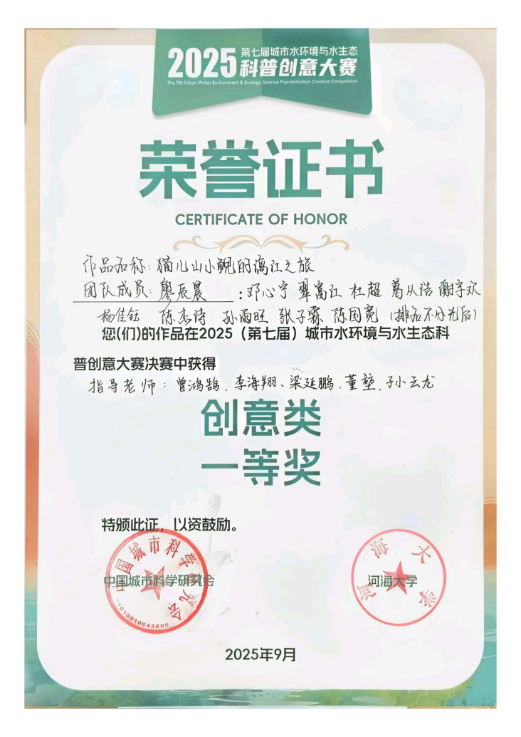 将继续以高水平学科竞赛为抓手,深化“专业教育+科普传播”的育人模式,鼓励学子立足本土生态实际,以更创新的形式传播水环境与水生态知识,为推动“美丽中国”建设、助力生态环保理念普及贡献桂工环境力量!