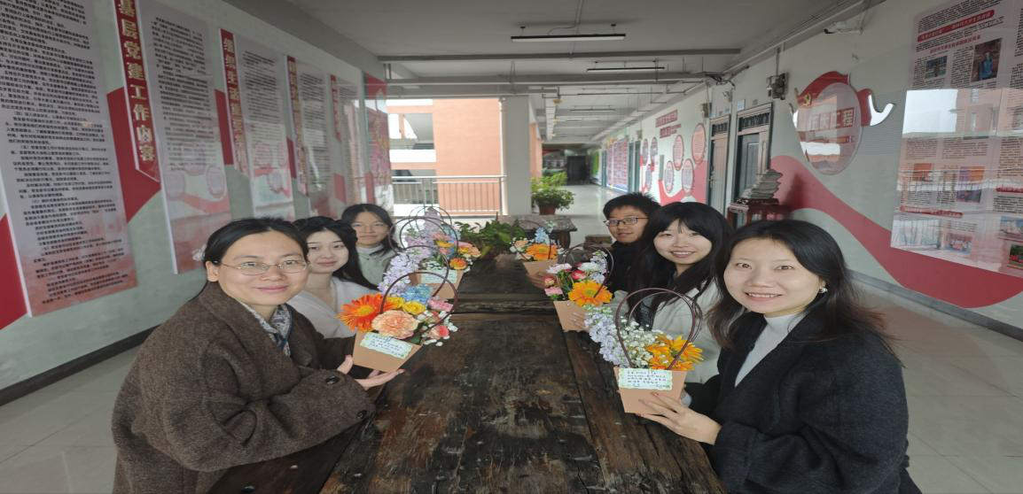 活动现场温馨雅致,学生精心制作满怀心意的花篮,通过“插花实践+感恩献花”双环节,为全院女教师送上节日祝福。一句句暖心的话语,一朵朵娇艳的鲜花,让全体女教师倍感温馨与感动。她们手捧鲜花,脸上洋溢着幸福的笑容,现场处处洋溢着喜庆、温暖、和谐的节日氛围。
