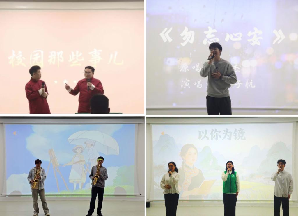 大赛在弘扬民族团结的经典曲目《大地飞歌》中拉开帷幕。随后,现代舞蹈、萨克斯演奏、相声、创意走秀及歌曲演唱等节目轮番上演,展现了新时代大学生的青春风采。特别值得一提的是,以“时代楷模”黄文秀同志先进事迹为蓝本创作的朗诵节目《以你为镜》,以真挚的情感深情讴歌了奉献精神,引发了现场师生的强烈共鸣,有效激励了广大学子立志报国、担当作为。经过评委公正评审,大赛最终评选出特等奖、一等奖、二等奖、三等奖及最佳表现奖若干名。