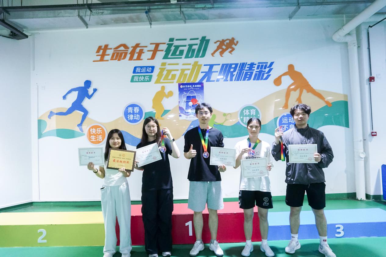 为备战此次比赛,学院提前组织针对性训练,并通过院内选拔赛确定参赛名单,为优异成绩的取得奠定了良好基础。赛场上,选手们沉着应战、敢打敢拼。女单项目一路领先,强势夺冠;男单项目不畏强手,勇夺季军;混双组合攻防默契,收获第三名;男双、女双项目也双双挺进八强。各项目选手均展现出顽强的斗志与良好的竞技水平。
