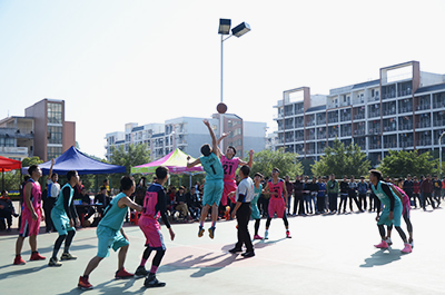 比赛开始前球场周围已经聚集了一排又一排前来观赛的同学们,这让参加比赛的队员们热情更加高涨,比赛气氛更为热烈。随着裁判员的一声哨响,激烈的篮球正式赛开始。现场比赛的热度急剧升高,球员们用高水平的篮球技艺和精准的投篮技巧为自己的队伍贡献了一分又一分,观众们的呐喊声此起彼伏。