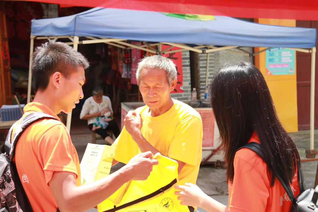 市集的街道上,商铺的房檐下,居民们在认真地听着队员们为他们讲解环保知识,并踊跃地回答他们提出的环保小问题。看得出来,那些居民都愿意接纳这些环保观念,并将之付诸于实际行动,相信在未来他们一定会为环保事业贡献出自己的一份力量。