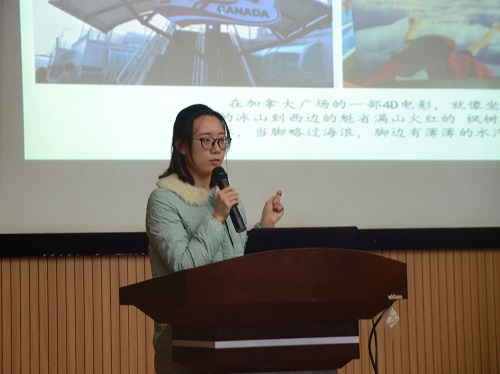 专项“百名学子看世界”团队的同学代表,讲述了在加拿大昆特伦理工大学进行的学习与交流。