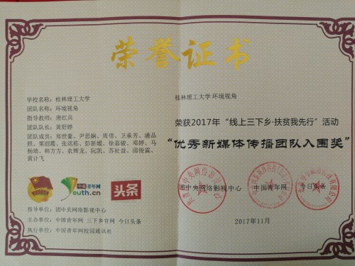 “环境视角”调研组在全国250余所大中专院校的1290余支实践团队中脱颖而出,荣获“优秀新媒体传播团队入围奖”。