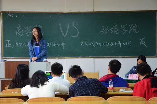 联合商学院在06201教室举行了联谊辩论赛。本次辩论赛由机控学院辩论队队长杨烨焕、艺术学院辩论队副队长韦仪以及地科学院辩论队主力鹏诗韵担任评委。