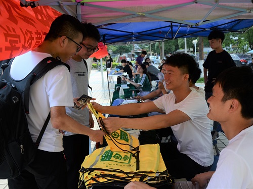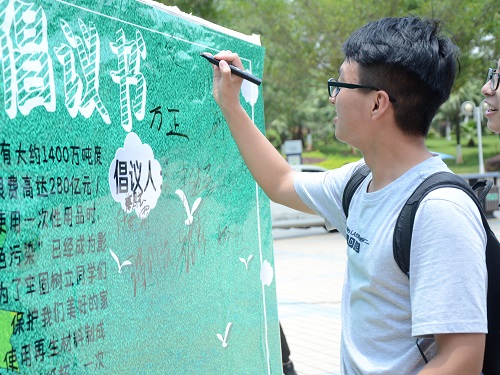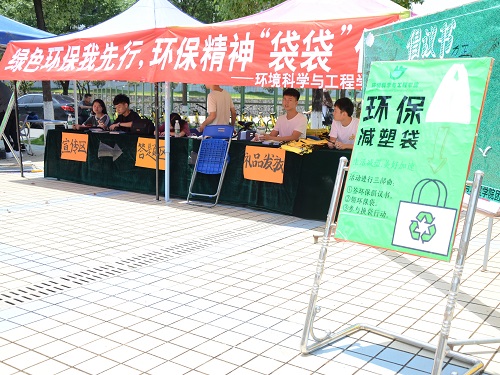 在雁山校区一号、二号食堂前进行主题为“生态文明,袋袋相传”的设点宣传活动,通过发放环保袋以及环保答题形式,提高广大师生的环保意识以及环保参与度。