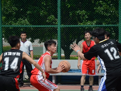 在一号球场的7号场和8号场上,“环境杯”篮球赛可谓是精彩非凡。全院各年级专业、班级共组成了12支队伍参与比赛,即将毕业的大四同学们参加了人生中最后一场“环境杯”篮球赛。赛场上,处处弥漫着浓浓的“火药味”。你争我抢,双方的每一个动作都针锋相对,球员们用各种各样的篮球技巧和精准的投篮为自己的队伍赢得了一分又一分。场外,观众们热情高涨,不断为球员们加油、呐喊,再炎热的天气也阻挡不了观众的澎湃之心,现场气氛十分活跃。比拼激烈的小组赛在20日上午圆满结束,以下球队: 15级给排、16级水利、16级环工、15级环工、15级水利、16级给排1队、2队以及大四球队成功晋级了八强。