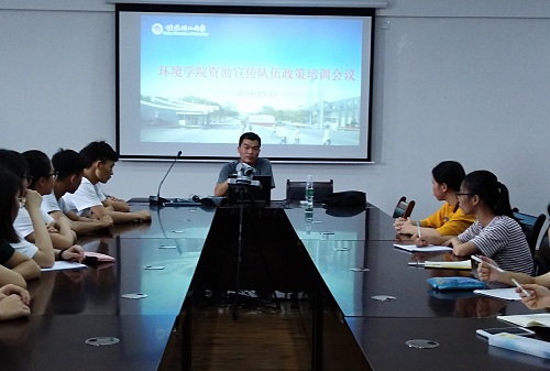 召开资助政策宣传队伍培训会议,学院负责资助教育工作辅导员黄兆凡老师主持会议,学院主要协助资助工作的主要学生干部参与会议。