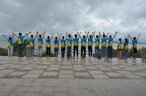 实践队成员在海滨生态公园合影留念