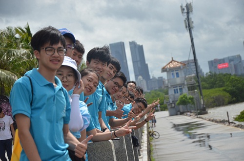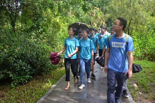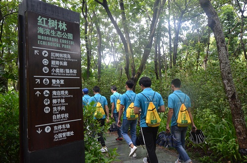 深圳红树林海滨公园作为全国唯一一个在市区的自然保护区,在海洋生态环境保护方面走在了全国的前列,为了提高团队成员对改革开放四十年来深圳市生态文明建设的认识,7月15日上午,“深圳环保创新改革”暑期社会实践团前往深圳红树林海湾公园进行实地考察。