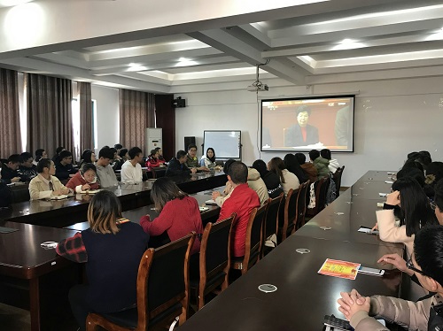 党委书记姜子亮、党委副书记郝文佳、团委副书记陆琴一同到场与同学们一起学习习近平总书记重要讲话精神。