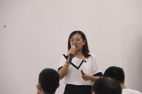 接下来,唐思婧围绕着个人收获、个人经历、学习能力、答疑解惑四个主题向我们展示了她的风采,给我们传授了经验。她坦言,大学四年,她过得十分充实,收获了专业知识、科研经验,提高了英语学习能力。更收获了真挚的友谊,最终保研到了理想的大学。她向我们传授了许多英语学习经验,多听多练,美剧综艺都是她六级成绩从434分提高到550分的致胜法宝。学姐更针对不同年级学生所面临的问题提出了建议,也向我们传授了保研经验,成绩单、个人简历、推荐信都是准保研人所必备之物。