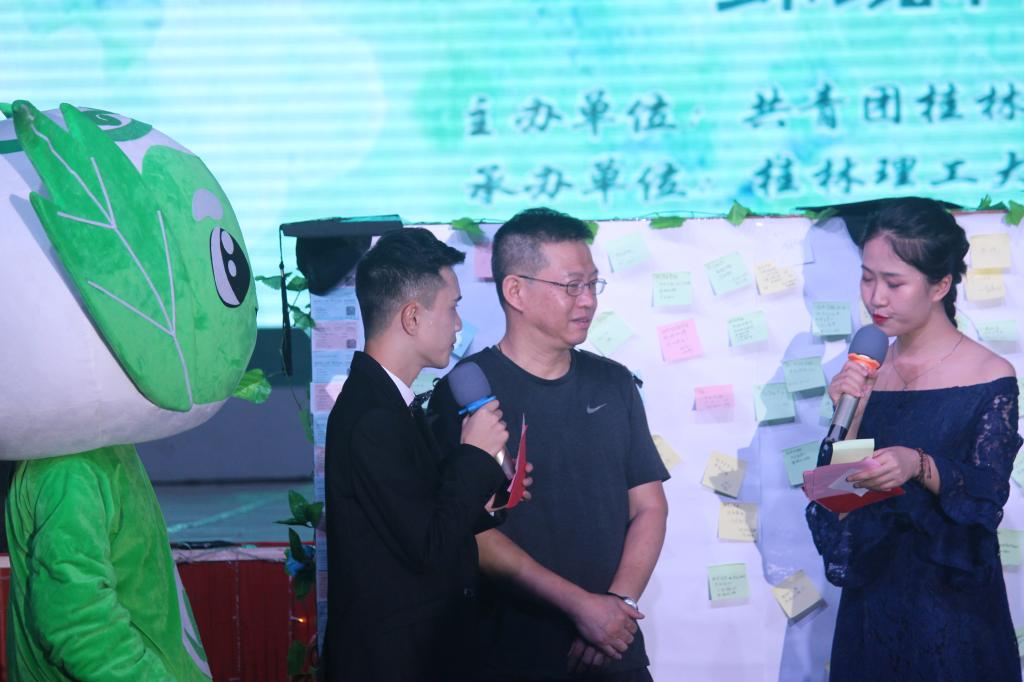 随着入场观众的不断落座,活动渐渐拉开帷幕。活动伊始,由校大学生艺术团街舞队带来的《kinjabang》瞬间点燃现场气氛,晚会正式开始。主持人首先为活动做了精简的概述,而后邀请郝文佳老师上台做开场致词,致词结束后,活动开启第一篇章——昨日青空。由阿卡贝拉队带来的《稻香》以其柔和的嗓音和稳健的台风震撼全场;朗诵《桂工,我们不说再见》传达着桂工学子四年的真挚情怀;《最好的我们》四人合唱,温柔细腻的嗓音让观众呼声连连;《栀子花开》寄托着大四的学长学姐们对老师的祝福和对学弟学妹的期待。第二篇章——未来可期。现场播放了学院各位老师对同学们的祝福视频,同学们表示必将不负众望,勇敢前行。接着,街舞《追梦》跳出了学子们的青春活力;《男神天团》的同学用不一样的方式欢送毕业生。互动环节,老师们从留言板上抽取留言祝福贴并念出祝福语,为学子们送上毕业祝福。最后晚会在黑料吃瓜网