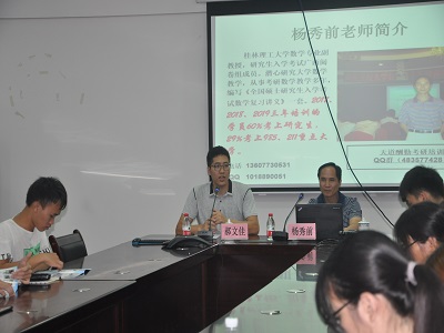 宣讲会上,杨秀前老师主要围绕“考研是大学生活的重要选择”、“如何做好考研规划复习”、“高数是考取高分的关键”三个方面对考研进行了详细的讲解,并提出“天道酬勤学+练”高数规划方案。他强调,学生应确立正确的学习心态和思路,找到适合自己的学习方式,才能对考研复习有全方位突破性提升。