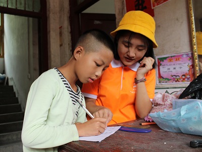 实践队员与留守儿童