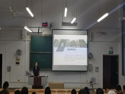 的研一新生们早早来到了07318教室,等待着师兄师姐们对海外研修的分享。首先由学院研究生辅导员唐源江老师做了开场演讲。本次分享会一共有五位师兄和师姐,他们都是在弗罗茨瓦夫理工大学进行的海外研修。