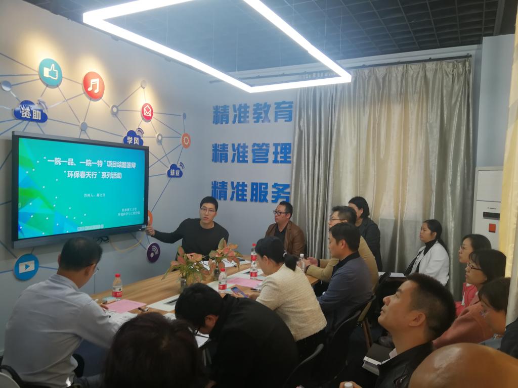 "一院一品、一院一特"项目——“环保春天行”的典型建设、宣传推广、资金使用及绩效完成情况、成果创建等方面进行汇报,并重点介绍了学院项目建设规划与特色发展情况、学院新媒体平台运营以及项目宣传情况、资金使用情况与项目成果展示等。