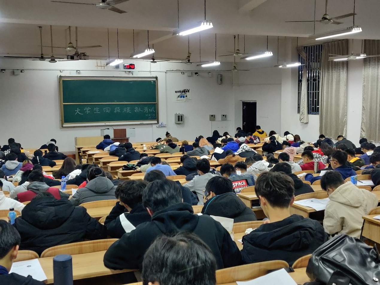 在雁山校区6栋409和4栋110教室举办四级模拟考试,2018和2019级参加四级考试的学生全部参与。