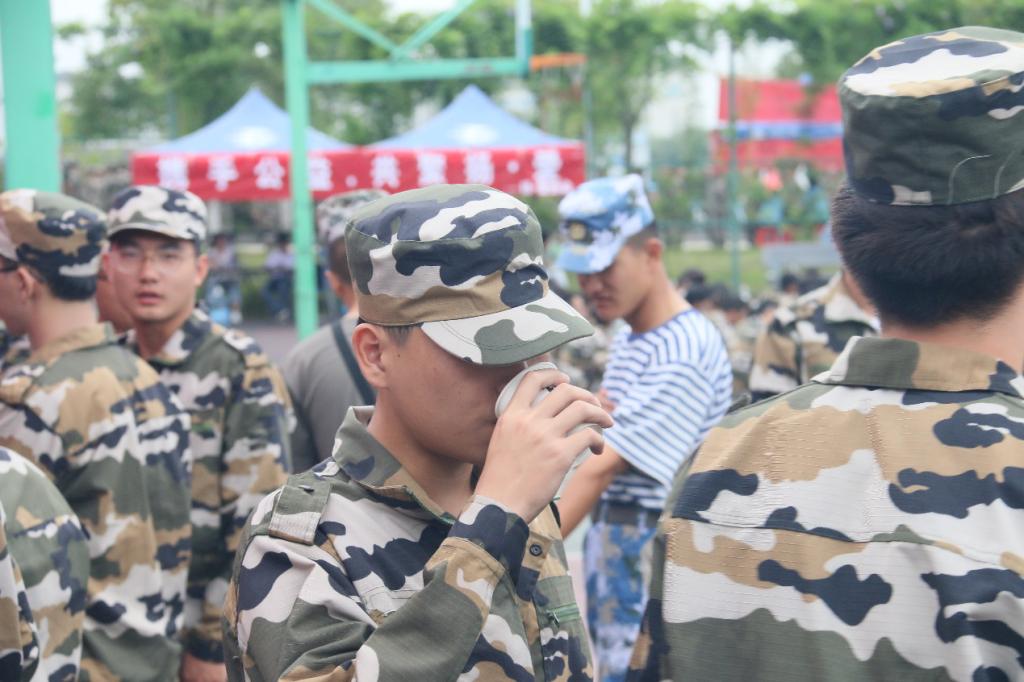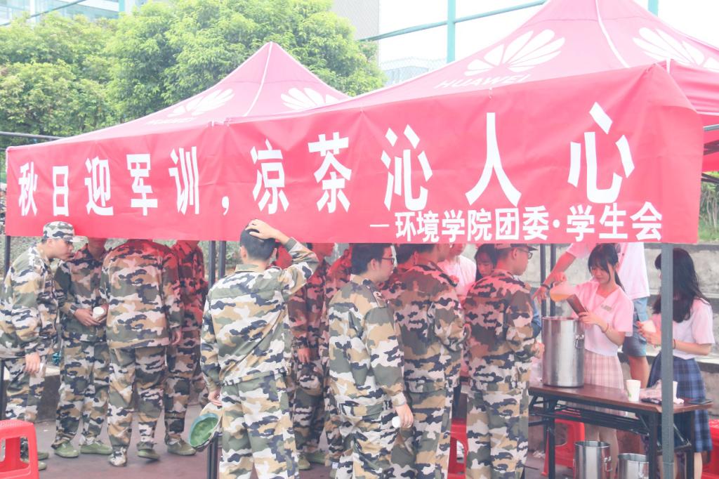 今年军训的天空时不时飘着小雨,虽在凉爽之际,但环院的新生学子们毫无懈怠,严整的军姿、响亮的口号、整齐划一的队列,无不体现出他们的朝气蓬勃,散发出青春的魅力。经过活动现场的搭建、凉茶的运输,活动如约而致。在军训休息期间,同学们们自带杯子,秩序井然,排队畅饮,甚者供不应求,在领取凉茶的同时,新生们也领取到了装有小扇子和黑料吃瓜网