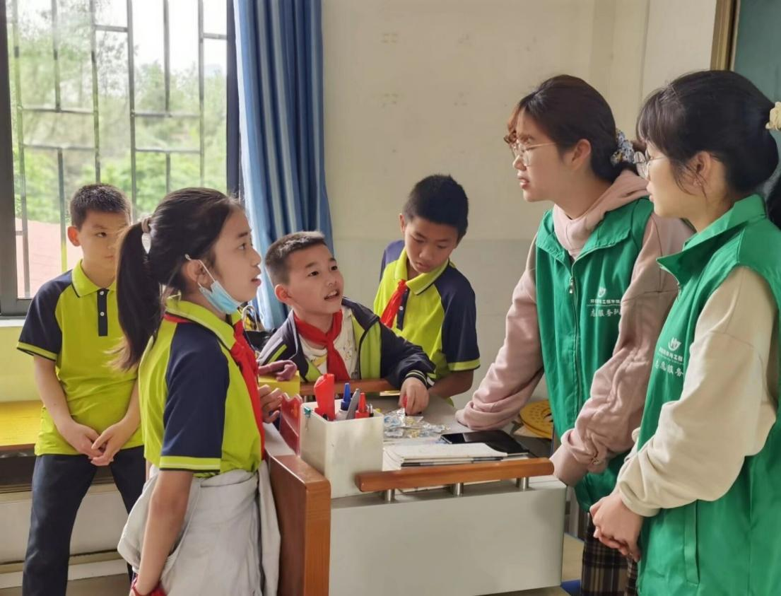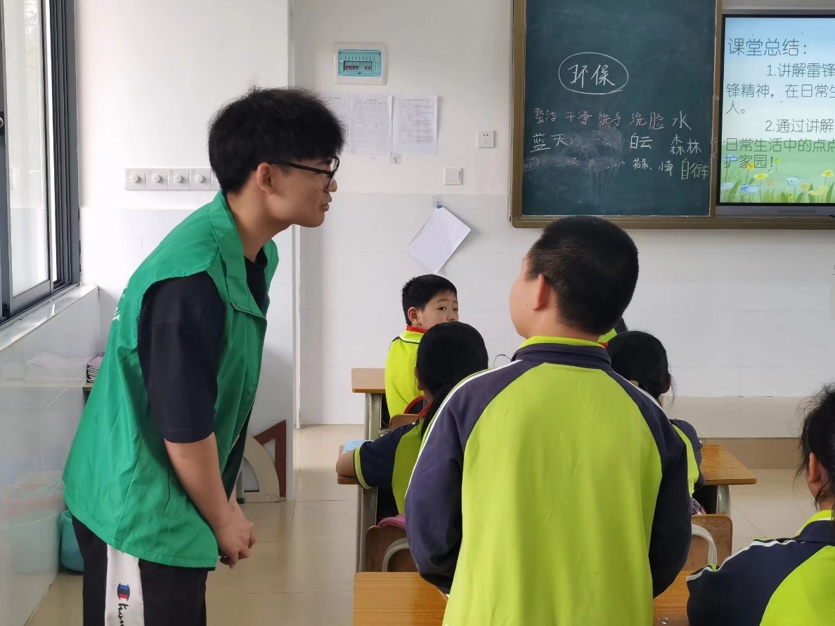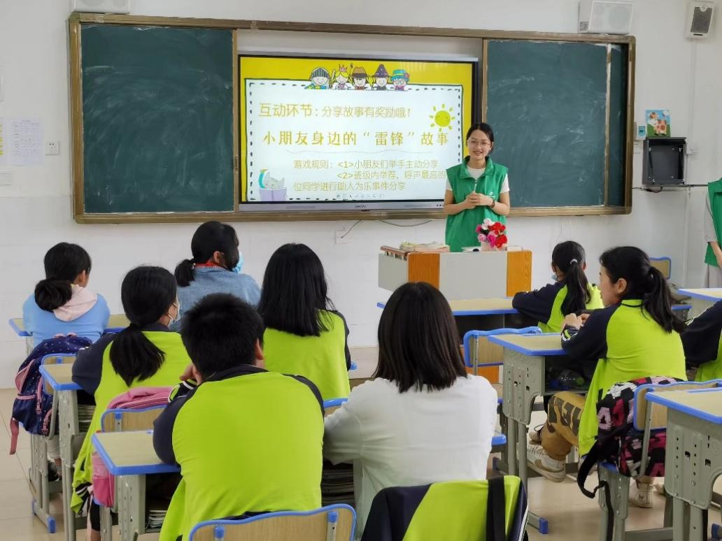 团委·学生会的八名志愿者组成的支教团于4月2日12:50统一乘车前往北芬小学,下午14:00开始授课,本次共有4班级参与活动,主要围绕传承雷锋奉献精神,践行环保理念的为主题,课堂上支教团的成员们为小学生们介绍了雷锋的英雄事迹和保护环境的相关知识。课堂上,同学们求知若渴,积极踊跃地回答问题。