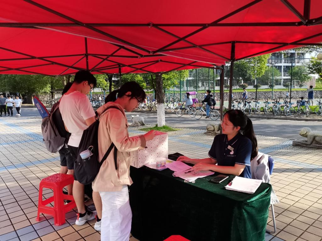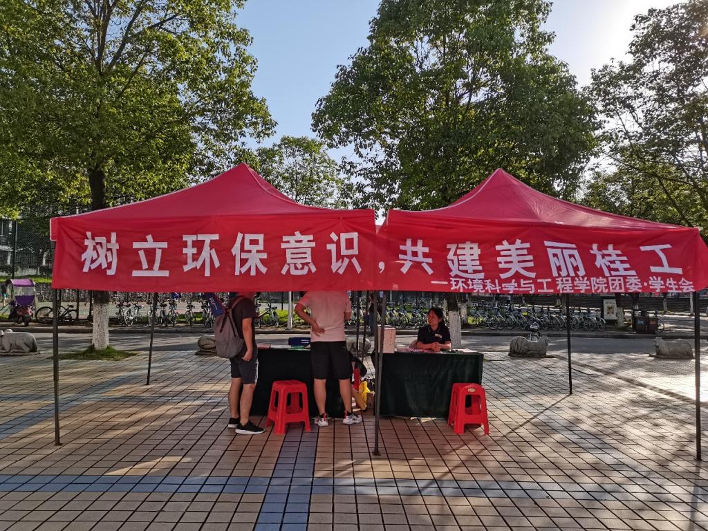 在雁山校区一号食堂、二号食堂开展“树立环保观念,传播环保文明”为主题的环保调查问卷设点宣传活动。