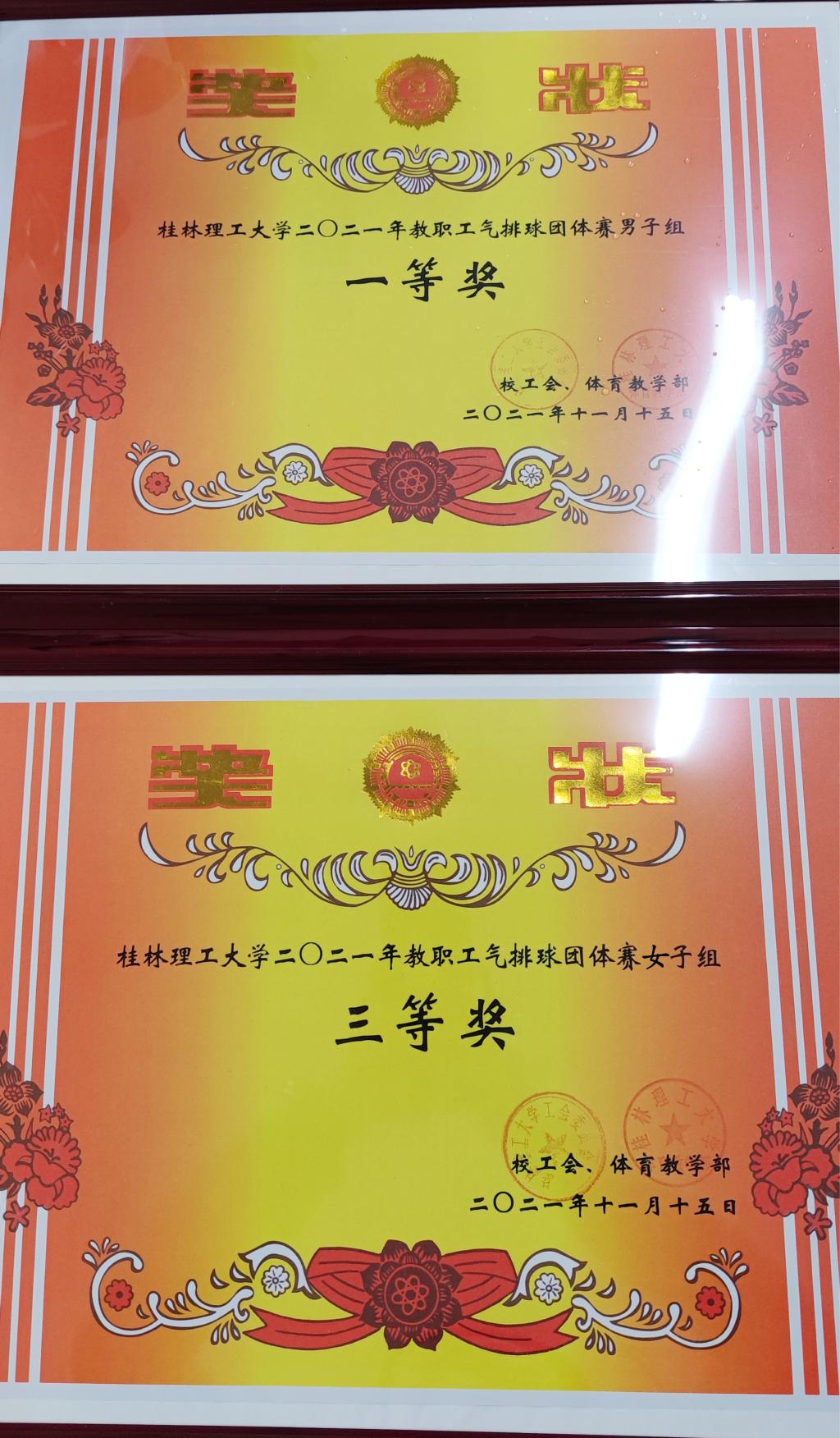 男女气排球队经过顽强拼搏,过关斩将,奋起直追,最终男子气排球队荣获一等奖,女子气排球队荣获三等奖。