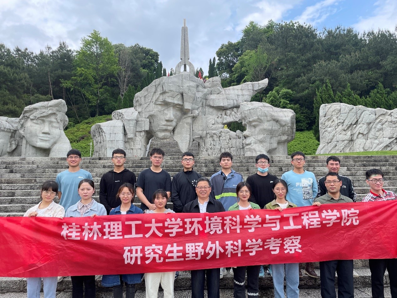 2022年4月22日,为丰富研究生课程《环境生物与生态工程》的课外实践活动,增强学生理论联系实践能力,进一步推动党史学习教育深入开展,激发学院研究生爱党爱国热情,学校党委副书记吴志强教授带领16名研究生前往桂林鱼伯伯生态农业科技有限公司和资源县中峰镇社岭村冷水鱼基地进行现场教学实习,下午前往兴安县湘江战役界首渡口遗址和红军长征湘江战役纪念园参观学习,学院副院长黄亮亮教授也参加了此次活动。