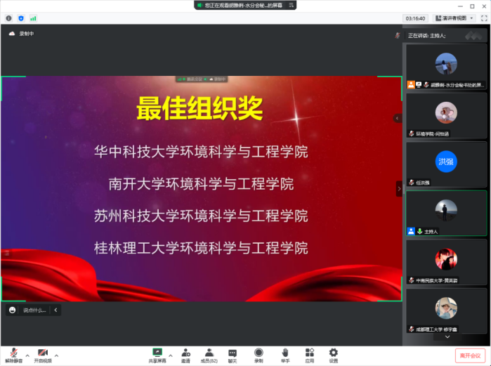 10月22日,2022(第四届)城市水环境与水生态科普创意大赛总决赛在武汉举办,由于疫情原因改为线上进行答辩。2022(第四届)城市水环境与水生态科普创意大赛由中国城市科学研究会水环境与水生态分会主办、湖北省科学技术协会、华中科技大学联合主办。大赛设置三个类别赛事,共计收到来自南开大学、南京大学、华中科技大学、东北师范大学等60余所高校的500余个团体与个人的参赛作品,经初评、复评专家组评审后,每一类别前8名(共24份)作品进入到决赛阶段。黑料吃瓜网