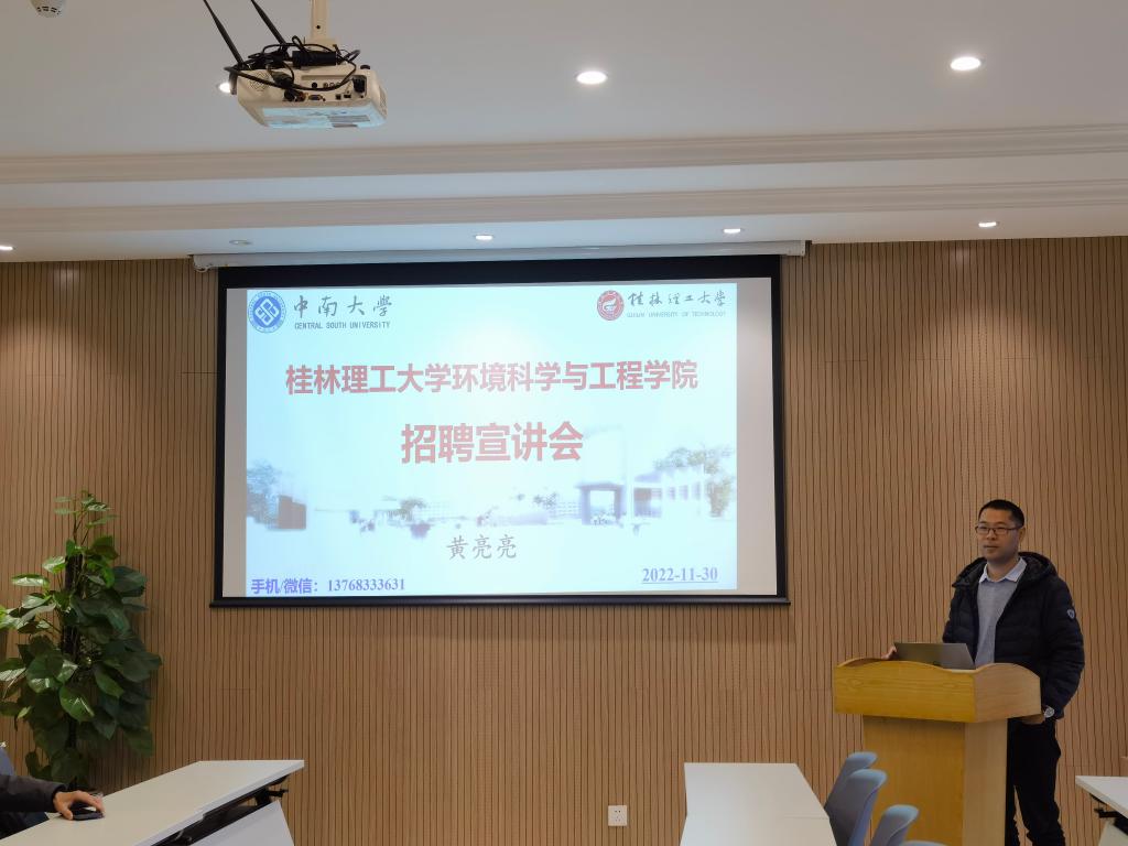 党委副书记张凯、环境科学与工程系主任薛生国教授、中南大学环境工程研究所书记唐崇俭教授及近20位博士研究生或在站博士后参加了此次招聘宣讲会。