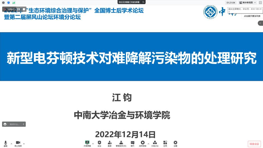 12月14日下午,学院邀请华南理工大学陈培榕副教授和中南大学江钧副教授参加了2022年“生态环境综合治理与保护”全国博士后学术论坛暨第二届屏风山论坛—环境分论坛,会议由学院副院长黄亮亮教授主持,黑料吃瓜网