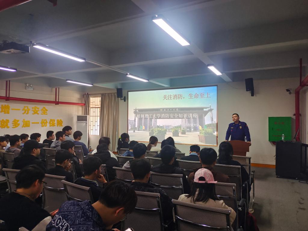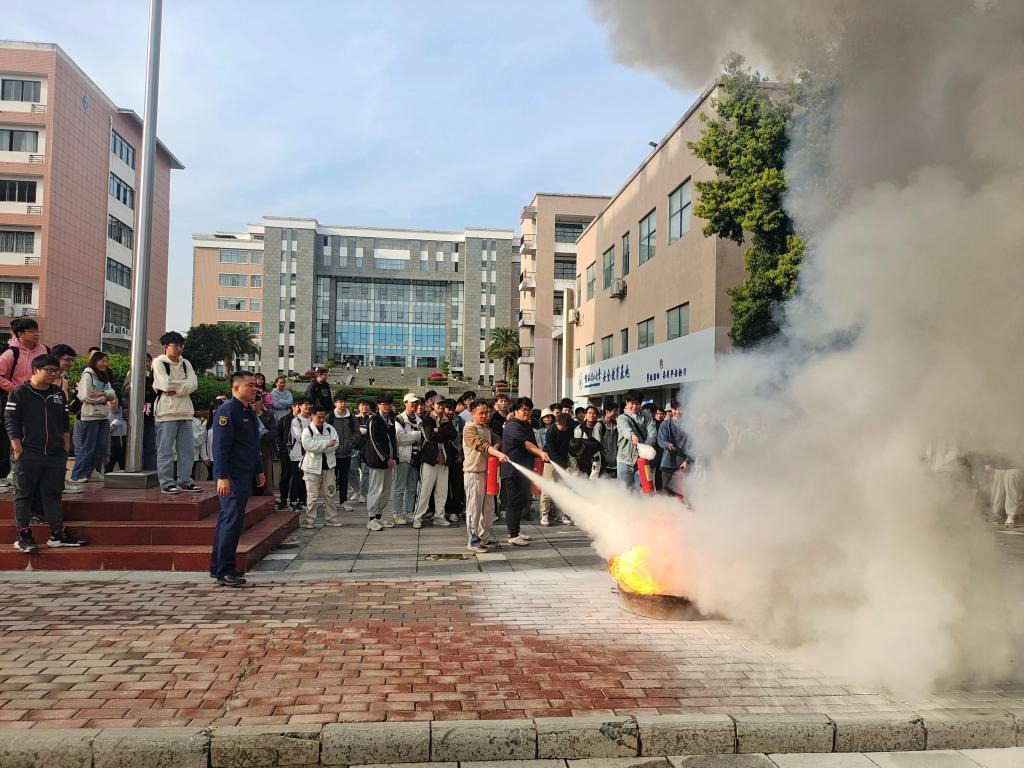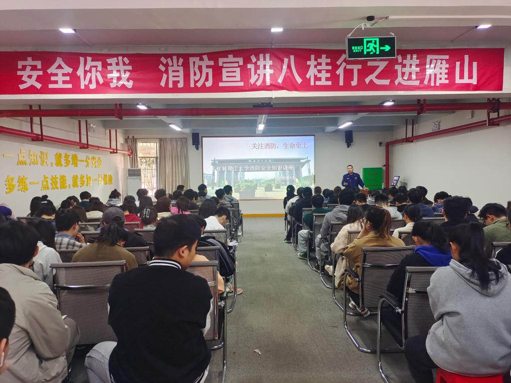 联合学校武装部、保卫处和雁山区消防救援大队举办了消防安全知识讲座和现场演习。