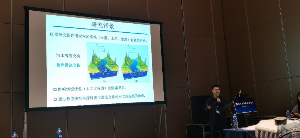 地下水专业危嵩副教授在地表水-地下水交互作用及模拟专题报告会场做了“侧向潜流交换对水文过程线影响的数值模拟研究”的口头报告。硕士研究生凌美慧在地下水污染物迁移模拟:从孔隙尺度到流域尺度专题报告会场做了“局部径向基函数法模拟不规则含水层区域中溶质迁移过程”的口头报告。会议期间,地下水专业参会师生积极与相关领域专家学者进行了充分的学术交流。