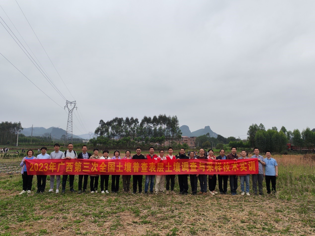 表层土壤调查采样队,积极报名参加广西区第三次全国土壤普查领导小组办公室组织的学习、培训和考核。截止今年4月,已有近30人获得了外业调查采样技术培训合格证书,具备了承接第三次全国土壤普查工作的能力和资质。同时,我校已经被广西区第三次全国土壤普查领导小组办公室推荐为广西区的土壤普查技术支撑单位,彰显了我校在土壤普查工作方面较强的实力得到了自治区的高度认可。