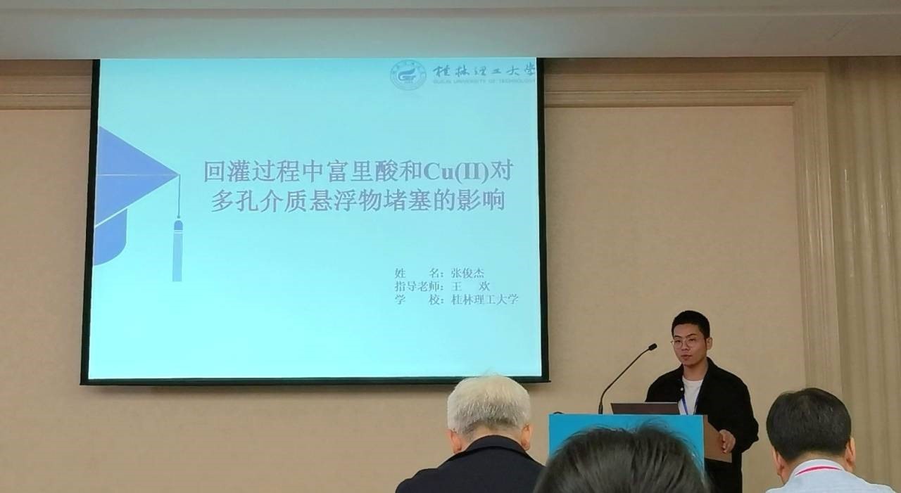 地下水科学与工程专业王欢老师、土木水利(水利)专业硕士研究生张俊杰参加了本次会议。张俊杰在水文地球化学分会场做了"人工回灌条件下富里酸和CU(Ⅱ)对多孔介质悬浮物堵塞的影响"的口头报告。张俊杰同学以人工回灌解决地下水超采问题为背景,报告了回灌水中铜离子和富里酸对含水介质层悬浮物堵塞影响的机理研究,听取了专家的点评与建议。黑料吃瓜网