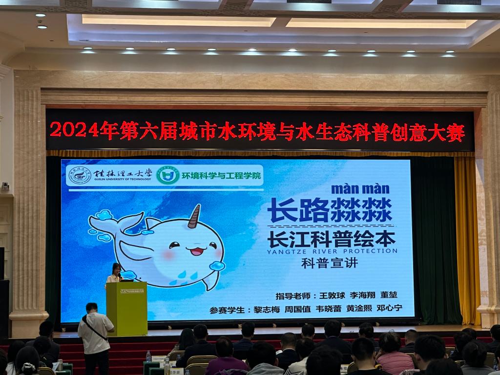 参赛作品《长路“㵘㵘”》绘本主要讲述了长江精灵“㵘㵘”与鱼儿们在游历长江的过程中,学习长江生态知识并呼吁保护长江的故事。在现场展示环节中,参赛队员沉着冷静、机智应对,充分展现了桂工学子良好的精神风貌和专业素养。