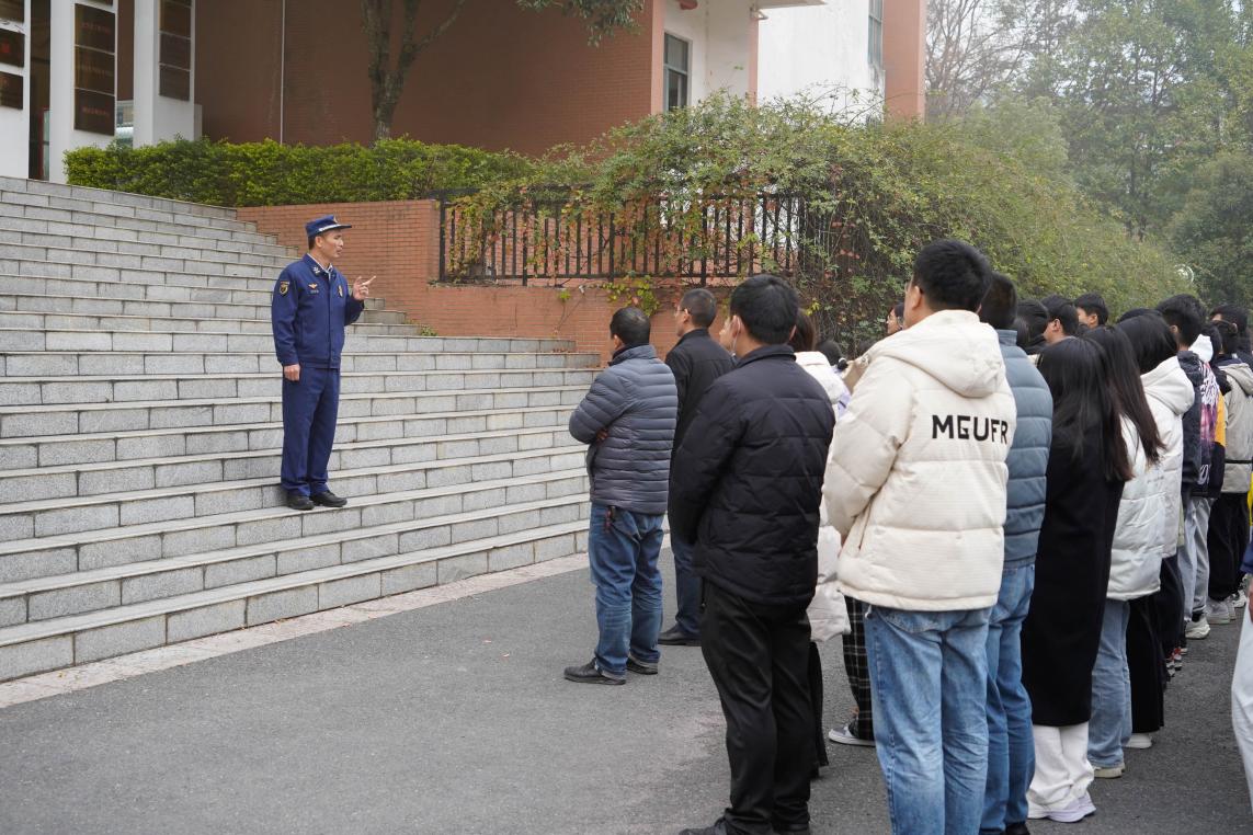 在安全集合点,学院党委书记代武社对此次活动做出总结,他充分肯定了本次逃生演练高效有序,同时,进一步阐述了开展消防演练的必要性和重要性,要求全体学生主动学习消防安全知识,自觉增强防范风险的主动性,全面提升应急应变和火灾自救能力。